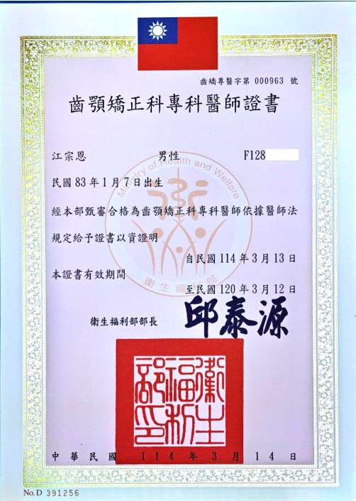 江宗恩 醫師 (部定齒顎矯正專科醫師)
